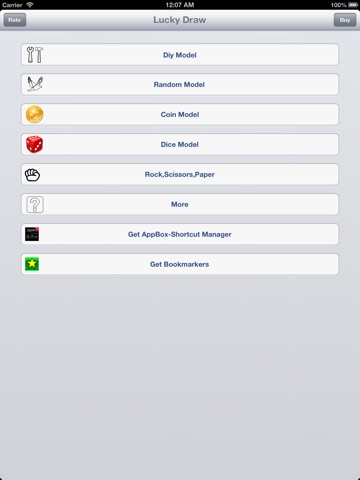 *[已完善]年会等活动很实用,同类型软件很少,必须赞一个。建议摇骰子可选骰子个数!另在iOS8中使用界面和ios6的不一样,特别是自定义的抽奖界面ios8不能显示多人结果,有待改进!加油加油!