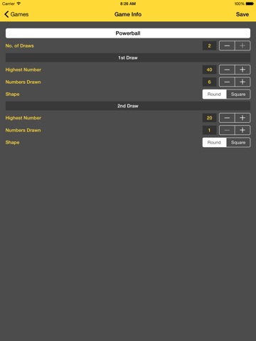 - Choose from 1 draw or 2 separate draws (e.g. for Powerball games).