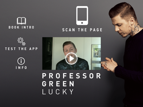 Launch the app and have your copy of LUCKY by Professor Green at the ready. Press the ‘Scan the Page’ button and locate the mix-tape icons within the book. Focus your device’s camera over them and all the digital exclusive content will come to life! Enjoy!