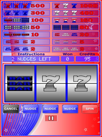 There isnt a great deal to say about this slot machine except press the red spin button and get the sevens and bars on the winning line. One nice thing about this slot machine is that you dont have to match all the symbols to win.