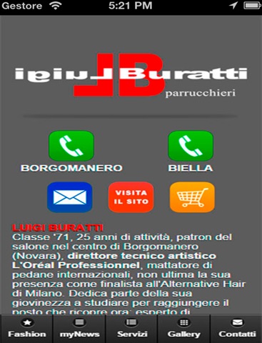 TITOLARI E STILISTI: FAUSTO BURATTI, manager del team LUIGI BURATTI, è una persona dinamica e sempre attiva, eclettico ed effervescente; si divide tra il lavoro nel salone a Biella e le location itineranti dove LAtelier – questo il nome scelto per lAcademy - tiene corsi di formazione per i titolari di altri saloni. Il brand LUIGI BURATTI nasce oltre venticinque anni fa dalla maestria del titolare stesso, da cui il nome. Oggi i fratelli Luigi e Fausto guidano ben tre gruppi di lavoro che arrivano da tutte le parti del Piemonte, Lombardia e della Liguria.