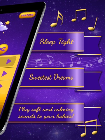 Play beautiful and soft melodies to put your baby to sleep! These relaxing sound will help your child sleep better! Download Lullabies For Babies and use this useful tool anytime you need it! This soothing compilation is all you needed to pacify the little ones when they start crying! There are tons of nursery songs and lullabies for children to choose from- all you need to do is find the one your kid likes!