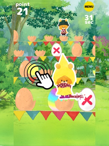 - Characters pops out and cracked and hit the ball into the egg!