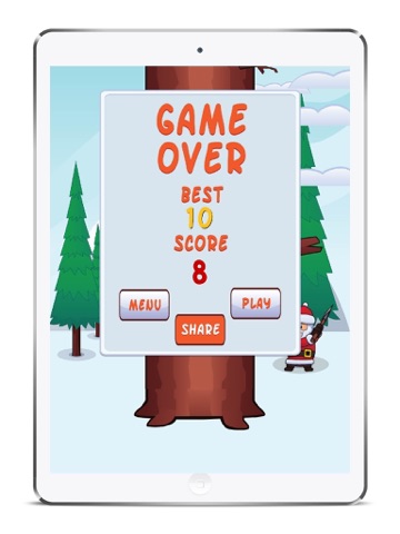 There are trees blocking Santas way to his workshop! He needs your help to chop down the tree whilst dodging the branches so that he can deliver the presents to all of the kids in time for Christmas! Upload your best score to Game Center and see how you compare against your other players! Share your score with your friends via Facebook or Twitter if you are logged in and text or email! An in-app purchase is available if you want to free up some extra real estate on your screen by removing the ads!