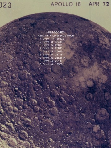 Over 20 background screens of actual moon photos! Background screens change with each new level and each new game.