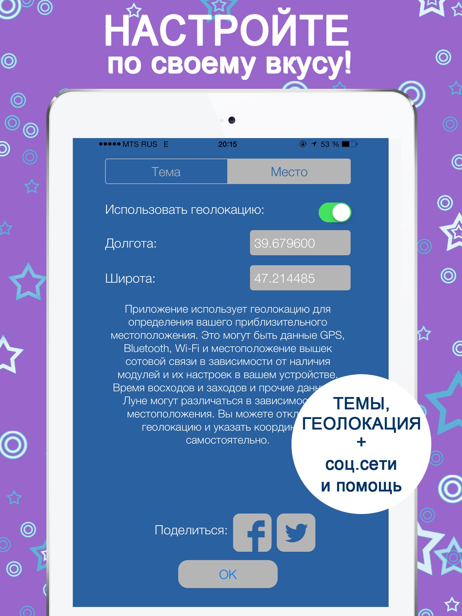 We have tried in this application to present data about astrological influence of the moon on our lives in the most convenient and easy to read format, not forgetting about its functionality.