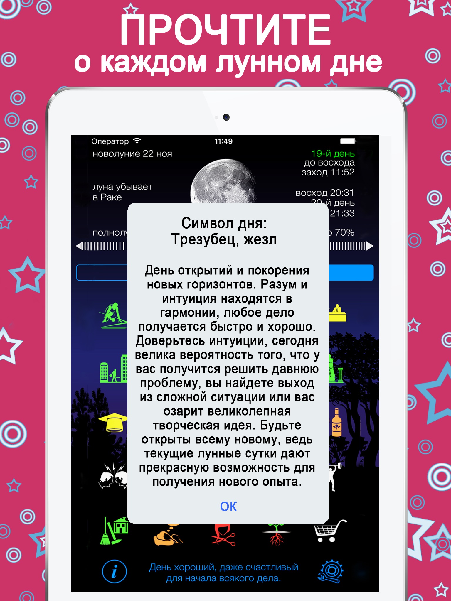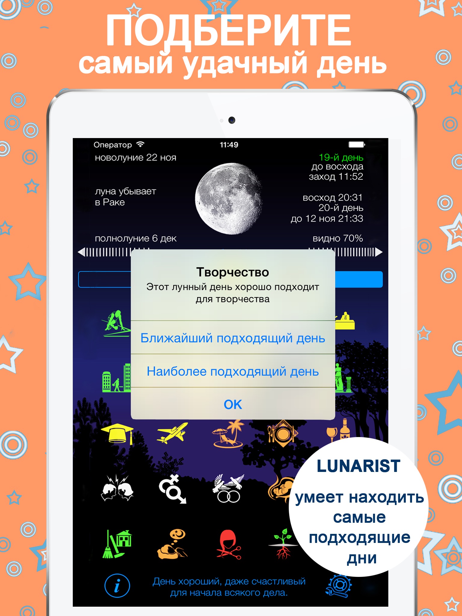 Lunarist will help you to make decisions which will be in harmony with natural biorhythms!