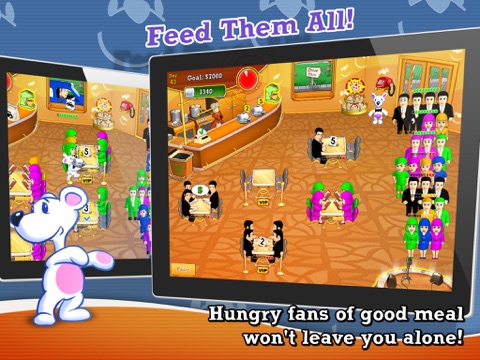 Snowy the Bear opens his own eatery and offers fast-paced yet simple fun. Seat hungry customers, take orders, serve food, collect cash and clear tables. Match colors, chain actions and keep your customers happy to earn big tips! Deal with VIPs and dont miss impatient drivers.