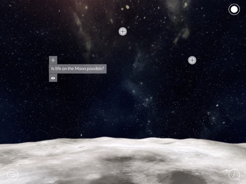 Discover a lunar panorama at 360 °. From the lunar soil, explore the space around you, enjoy an Earth sunrise and find out exclusive contents and explanatory animations to understand everything about our unique natural satellite.