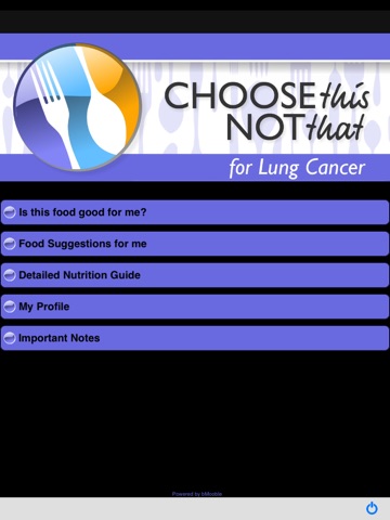 Choose This not That for Lung Cancer. Inside this colorful app, you will find easy to follow suggestions on how to improve your health through nutrition and the food choices you make every day. This app provides comprehensive and actionable nutrition guidelines for how to reduce your risk, prevent and combat Lung Cancer. If you rather tackle health issues and risks through proper nutrition and lifestyle changes then this app is for you!