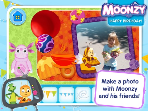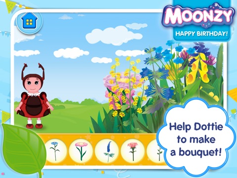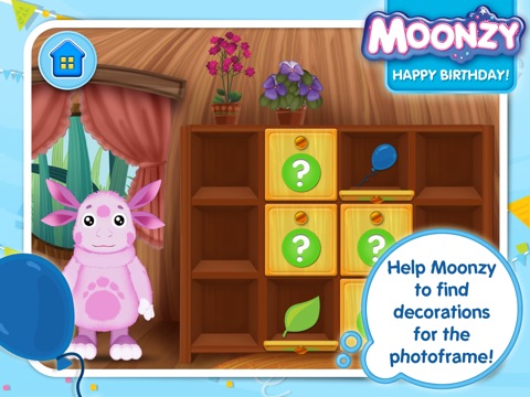Lets make a present for him! You can bake a cake, make a pretty greeting card, collect a big basket of flowers, or make a photoframe. Moonzys friends will help you!