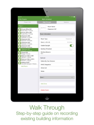 This app is optimized for commercial applications such as office spaces, K-12 educational facilities, and college/university campuses.