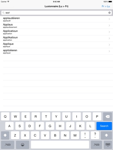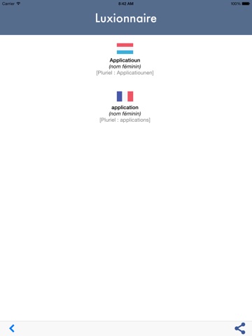 Luxionnaire est un dictionnaire franco-luxembourgeois comprenant plus de 26 000 références dune langue vers lautre soit plus de 52 000 références au total. Grâce à un moteur de recherche élaboré, vous trouverez facilement vos traductions. Vous pouvez utiliser des caractères génériques (* pour plusieurs caractères, _ pour un caractère) pour étendre votre recherche par exemple, pour rechercher tout ce qui contient le mot "pere", saisissez "*pere" dans la barre de recherche.