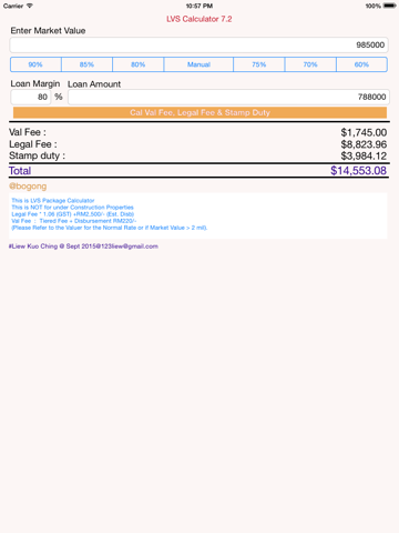 This App is for the calculation of the LVS Valuation Fee, Legal Fee & Stamp Duty calculation