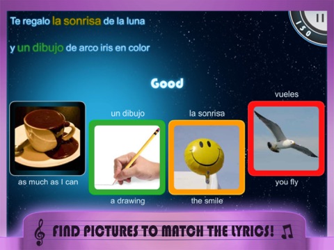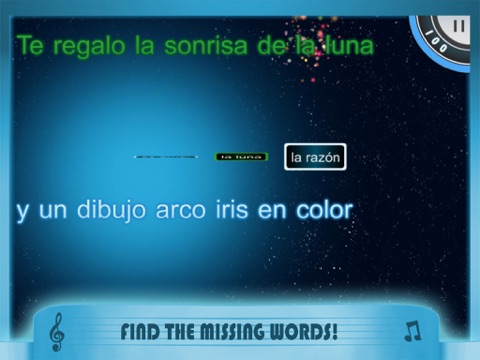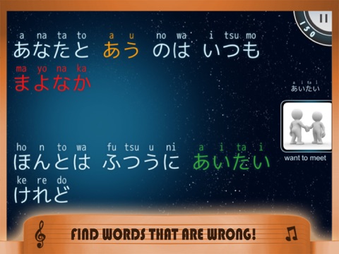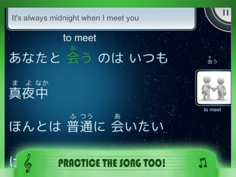 歌詞に関する問題が出るのに、流れてる歌が歌詞の該当部分に到達する前にヒント(ほぼ答え)が表示される。歌詞を覚えろという意味かもしれないが、これではリスニングの練習にならない。 でもゲームそのものは面白いので星2です。