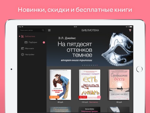 Приложение доступно к загрузке бесплатно, книги и аудиокниги внутри приложения платные. Следите с помощью push-уведомлений за промо-акциями, скидками и бесплатными раздачами книг.