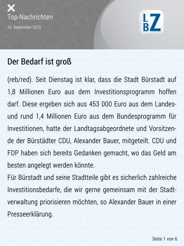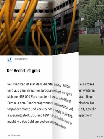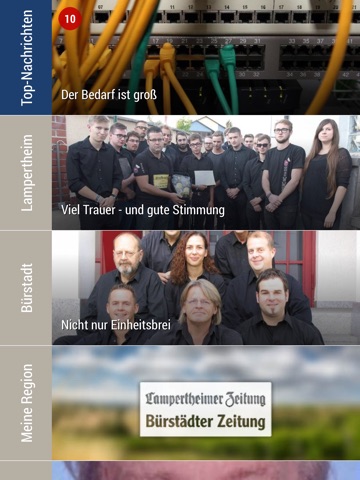 „Tippen“ Sie sich durch die Artikel aus den Themenbereichen Region, Politik, Wirtschaft, Sport und Polizei. Gefällt Ihnen ein Artikel, empfehlen Sie Ihn per Fingertipp auf Facebook und Twitter oder verschicken Sie eine E-Mail mit dem entsprechenden Link. Zudem können Sie alle Beiträge dauerhaft als Favoriten speichern.