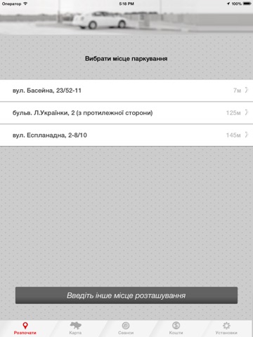 You can top up your account from a variety of sources, such as vouchers, bank cards or through the Bank "Khreschatyk." Information on your founds will appear in your personal account in the application, where you can view detailed history of your parking expenses.