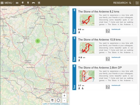 A "circuit" module that gives you access to different routes in which you can find points of interest based on your GPS position. Your smartphone will display the map of the route to follow, step by step for each route.