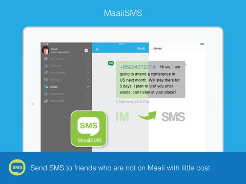 Maaii allows you connect to other Maaii friends worldwide with free calls & messages over Wi-Fi or data network!