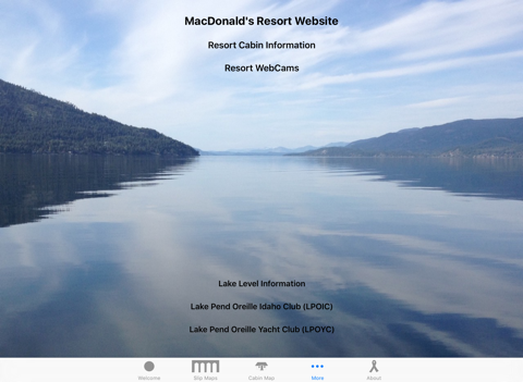 Welcome to MacDonalds Hudson Bay Resort! Family owned and operated since 1951, we are perfectly positioned halfway between Coeur d Alene and Sandpoint on the southern end of Lake Pend Oreille in Idaho. For those of you visiting Silverwood we are only 15 minutes away. We offer cabin rentals and a variety of boating and recreational services. Our app provides maps of our marina and cabins. It also provides links to resort resources and local information.