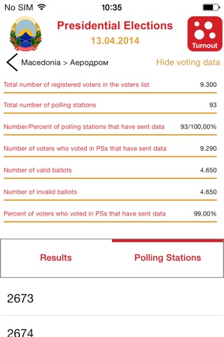 This is an Election Day reporting application that will present turnout and results data from the Presidential Elections 2014 and Early Parliamentary Elections in Macedonia. The app will present data from several levels, from the national level down to each polling station, and will provide real-time preliminary updates based on data available on the official results site of the State Election Commission of Macedonia.