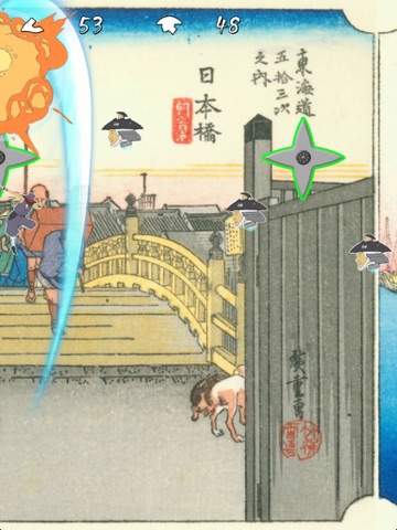 * You caught by tapping the shuriken -> Fly by tapping the screen!