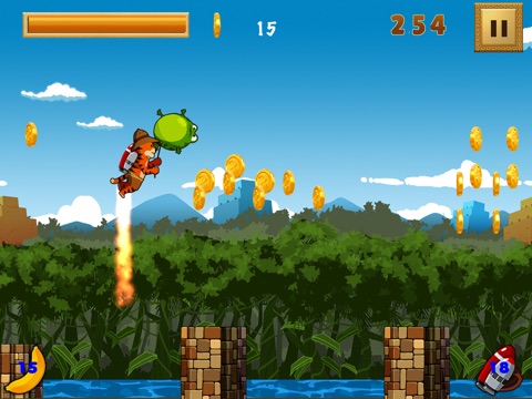 Collect as many coins as possible. With them you can buy different power-ups and add-ons. Your main goal is to avoid falling into water by landing on ancient pillars. You can take a brake on each landing, but not for long.