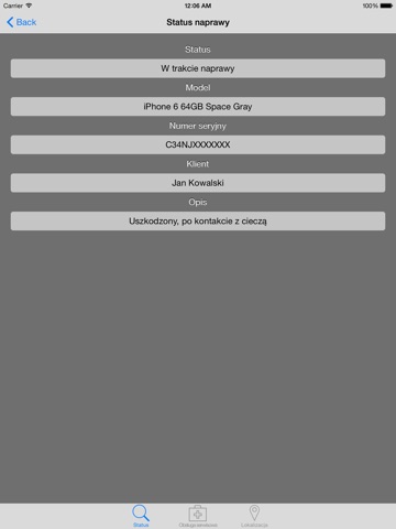 Aplikacja Macoach daje możliwość klientom firmy na podgląd aktualnego stanu naprawy urządzenia. Dodatkowo umożliwia ona zamówienie kuriera door-to-door bezpośrednio z Państwa iPhona / iPada oraz szybki kontakt z serwisem urządzeń lub działem szkoleń i konfiguracji.