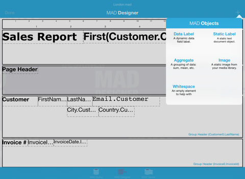 MAD® Designer, the Mobile Analytic Document Designer, is mobile reporting software that allows you to create custom views on your enterprise data systems.