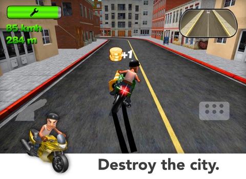 The better your motor bike, the faster youre sliding through the bendings. Dont crash into the buildings or the police will catch you!