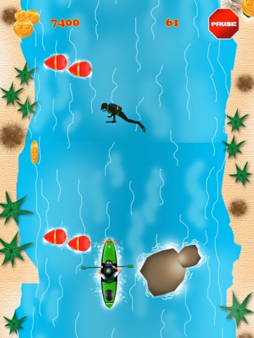 This game features "Fun Mode" which gives the kayakers unlimited health with uninterrupted gameplay for as long as you choose. Normal gameplay can be resumed by turning this feature off in the main menu by touching the "Fun Mode off" button