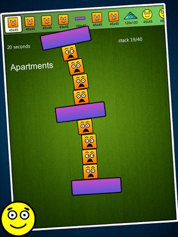 Pass each level by stacking all of the shapes without any falling off the screen.