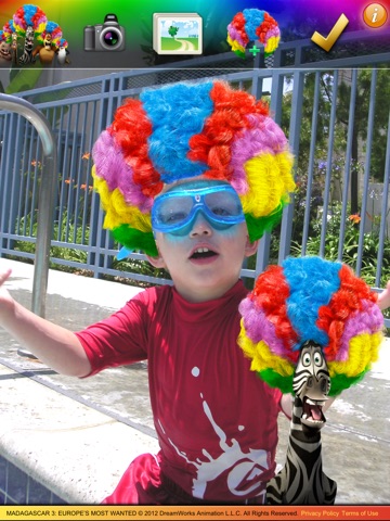 The Zoosters of Madagascar 3 invite you to join the afro circus with a virtual rainbow wig! Upload or take a photo with you, your friends and your favorite Zoosters, then customize the wig to match the size of each head perfectly. Share your #MADWigOut photo on Facebook/Twitter and post your afro circus photo on Instagram for the most colorful look in your social network!