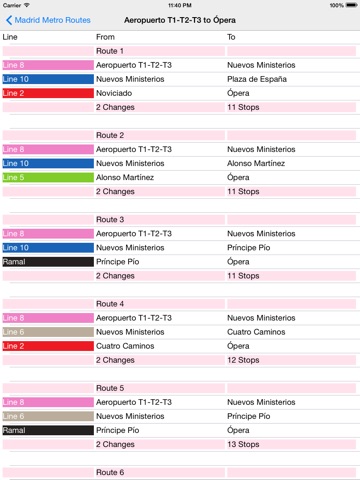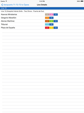 You can also view the detailed station list for each train line in Madrid. You can long tap on any station name from the list to see it on online maps.
