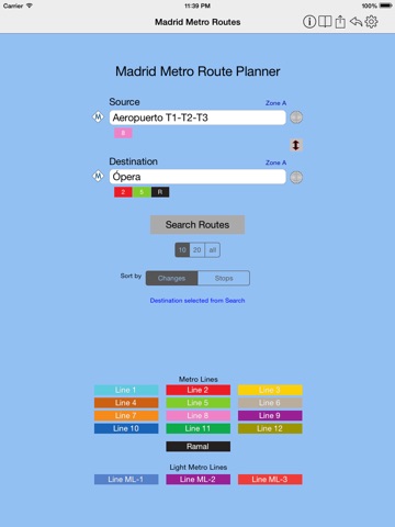 This App helps you find metro routes which can be used to travel from one location to another in Madrid city.