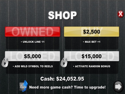 Ton of unlockables! Use your winnings to purchase all of the 28 items in the Shop to unlock additional game features. Unlock the random bonus trigger to win the chance to trigger a bonus game on every spin. Unlock additional paylines, higher max bets, and credit values. Unlock increased bonus chances. Unlock extra free spins. Unlock extra bonus symbols. The list goes on!