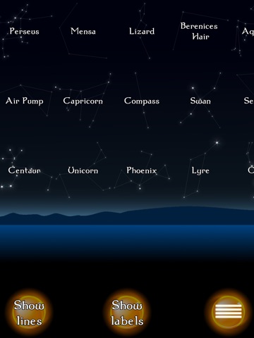 * Enjoy the view of your nightly sky! For all your restored constellations, you can show their latin or english names as well as the constellation lines.
