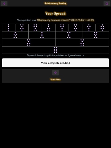 This app will do its best to let you peek into your positions and opportunities regarding geomantic reading you provide while concentrated on a specific matter, subject or situation. Remember, the purpose of Geomancy is to give advices, shed new light on misty occasions and help you make decisions, not to tell you the future. Used properly, Geomancy can be your very reliable guide in everyday life or during important turnovers.