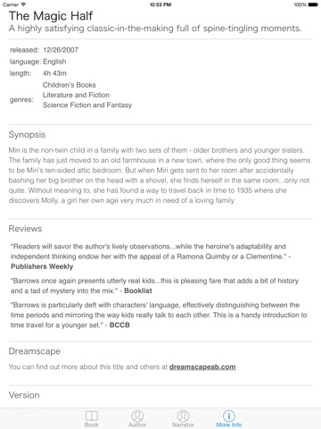 This app is an unabridged professional audio recording produced by Dreamscape Media LLC.
