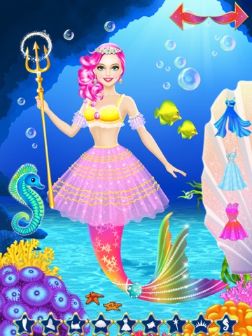 Immerse yourself in the beautiful ocean to see mermaids and other magical creatures of the sea! Play with all kinds of magical looks for the mermaids in this fun and colorful makeover game! Choose her hairstyle and jewelry, apply makeup and face paint, and dress her in a pretty outfit.