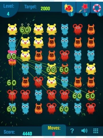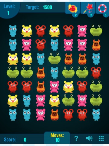 Magic Monsters are here! Match them all and score big in this monstrously fun puzzle game! Use keen matching skills and awesome powerups to achieve your target in the given number of moves. Unlock achievements and earn rewards with more than 40 free levels of magical, monsterful, match-3 bliss!