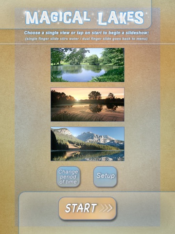 You can watch them separately or in a form of a slideshow. Single finger slide stirs water, dual finger slide goes back to menu.