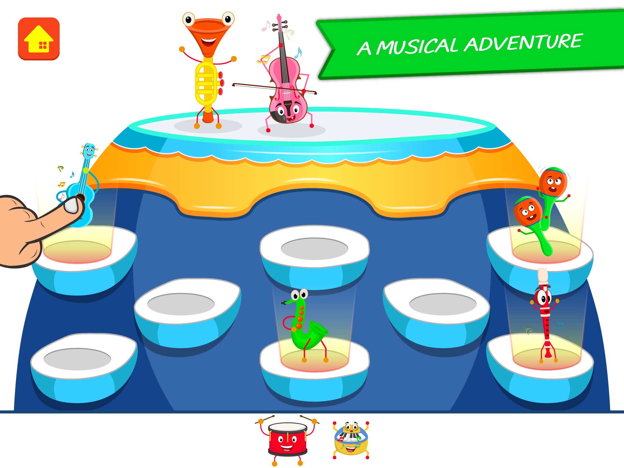 • 8 colorful instruments, each with their own unique sounds and dance!