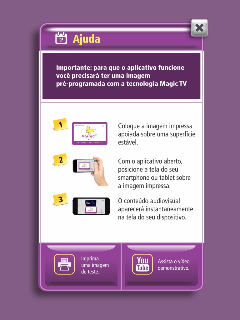 A Magic TV é mais nova forma de mídia segmentada disponível para smartphones e tablets. Trata-se de um aplicativo inovador que utiliza a câmera do seu dispositivo móvel para identificar imagens impressas pré-determinadas, convertendo-as instantaneamente em conteúdo audiovisual.
