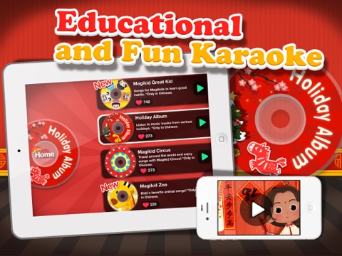 Get ready to rock! With 60 songs in Mandarin Chinese and English your child will be singing along in no time. Perfect for practicing Chinese language skills and building your child’s confidence. Join our cast singing songs about good manners, brushing your teeth, and being an awesome kid. Simple pick a song and sing-along with the onscreen lyrics, and share your voice with the world.