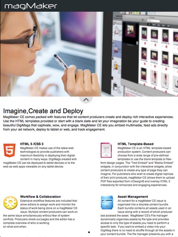 – MagMaker CE is a simple yet powerful web-based authoring environment for creating digital magazines, catalogs, communications tools and much, much more