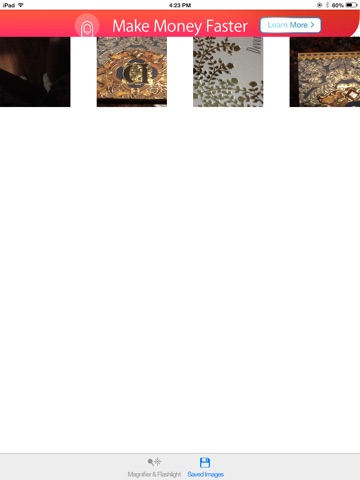 Magnifying Glass - with Flashlight and Image Capture lets you magnify text and small objects. The flashlight brightness slider allows you to get the perfect amount of light on the object. You can capture the image and view it later in the saved images tab. You can scroll through previously saved images and share them through email, text, Facebook, and more.