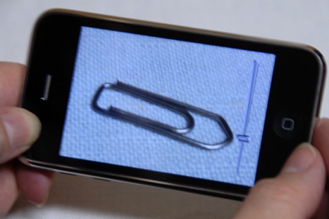 The application uses the integrated camera of the device to show a zoomed image on screen.