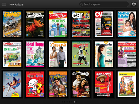 Some of the magazines available are Maxim,Mathrubhumi Star&Style, BioSpectrum, Bike India, Mathrubhumi Yathra, BioSpectrum Asia, Mathrubhumi Grihalakshmi, Mathrubhumi Arogyamasika, Tehelka (English), Nana, Businessworld, Grihalakshmi, PCQuest, Mathrubhumi Weekly, Mangalam Weekly, Chithrabhumi, DataQuest, Aarogyamangalam, Car India, Vellinakshatram, The Sunday Indian (English), Voice&Data, Mahilaratnam, Computer Active, News n More, Ente Bhavanam, Power Watch India, Ayurarogyam, Commercial Vehicle, The Sunday Indian (Hindi), Kanyaka, Education Insider, Pachakuthira, Mathrubhumi Sportsmasika, Snehitha, Cricket Today (English), Flash Movies, Business & Economy, Cinema Mangalam, Current Books Bulletin, Nostalgia, Down To Earth, Seminar, Sanghaditha, Madhyamam Weekly, Kerala Kaumudi, Bobanum Moliyum, Mandoos, Tintumon, Chitrakadha, Toms Classics, Unnikuttan Classics, The Human Factor, Thathamma, Chandrika Weekly, The Astrological e-Magazine, Kadha, Kalicheppu, The Sunday Indian (Malayalam), DCB News, Jothishabhooshanam, Mahila Chandrika, Industrial Products Finder, Sadhna Path, Cricket Today (Hindi), Keralasabdam, Kunkumam, Jyothisharatnam, Hasyakairali, Panchanga (English), Were House, Emerging Kerala, Ravanayan, Future Medicine, Smart Photography, Mother & Baby India, Thozhilvartha, Balabhumi, Minnaminni, Cartoon Plus, Kalakaumudi, Jyothisharatnam Panchangam, College Beauty.